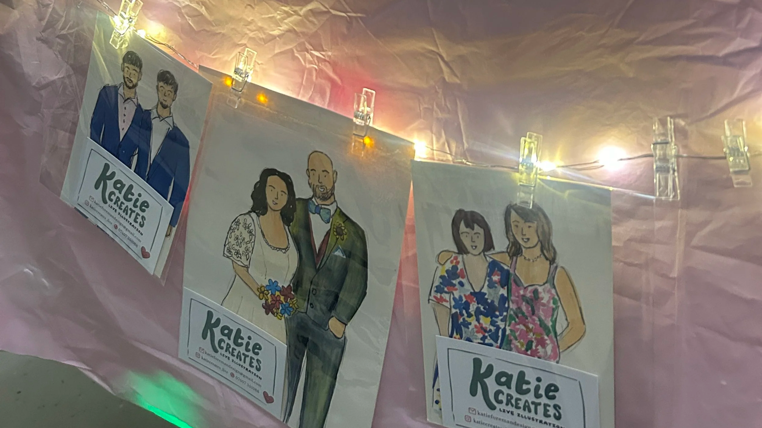 7-8 hours of illustrating. 60+ illustrations at A6 size. Prices start at £500 depending on travel and guest numbers.
